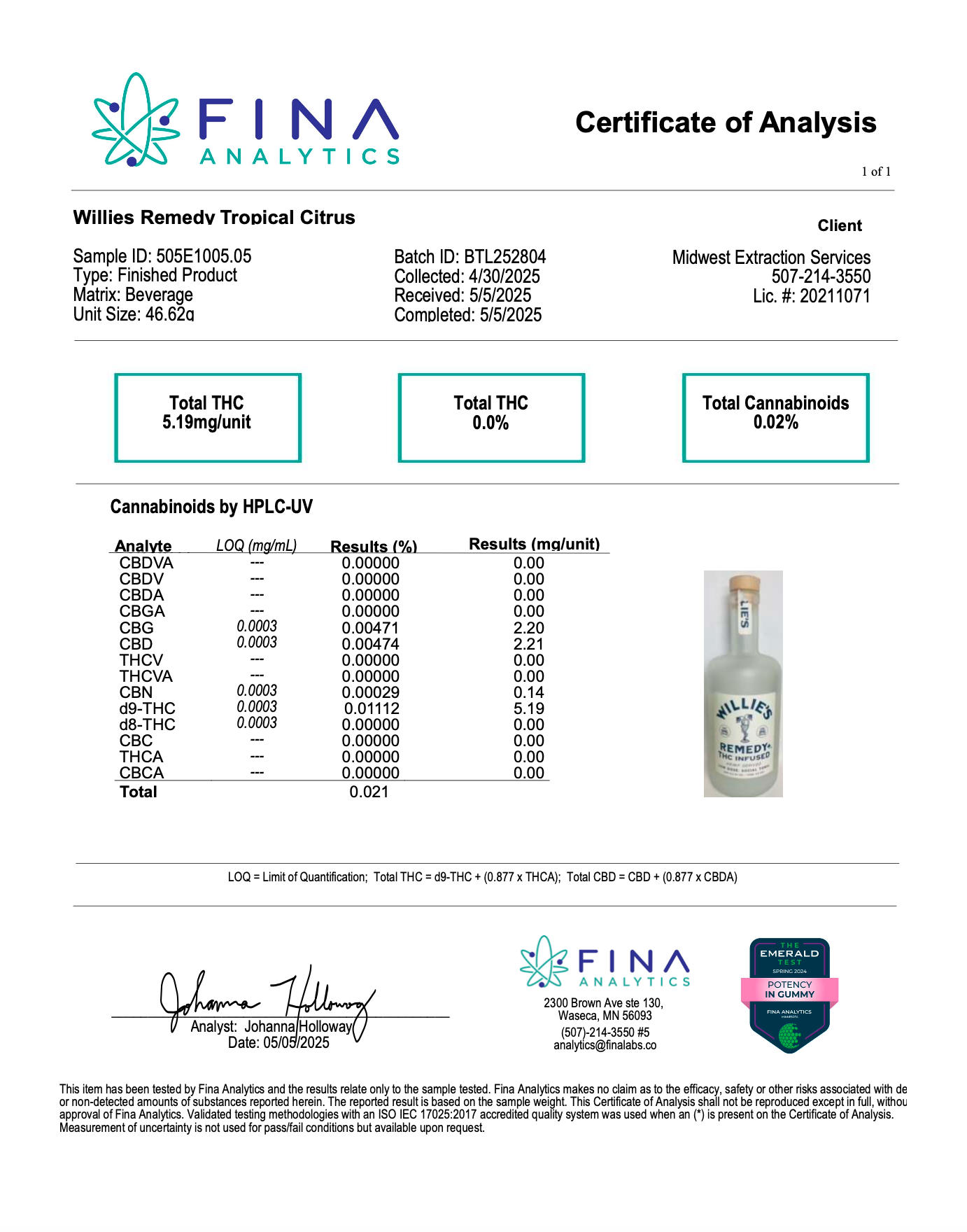LabReport (#927) Delete Back to listing Edit Name 5.5.2025 Sample Name Null Sample Matrix Null Product Type Null Lab Name Null Matching Name 5.5.2025 External Url https://cdn.shopify.com/s/files/1/0857/8478/9239/files/5mg750ml5.5.png?v=1747524312 Internal Url https://cbdextract.nw.agency/lab-reports/5.5.2025.png Category 5mg - 750mL Bottle Type png Project Wille [ 112 ] State Processed Additional Data Extraction Date: Expiry Date: Delta-9 %: THC-A %: Total THC %: D9/THC-A %: Debug Data Null Markdown Content Null Do you really want to delete this item? There is no undo for this operation.