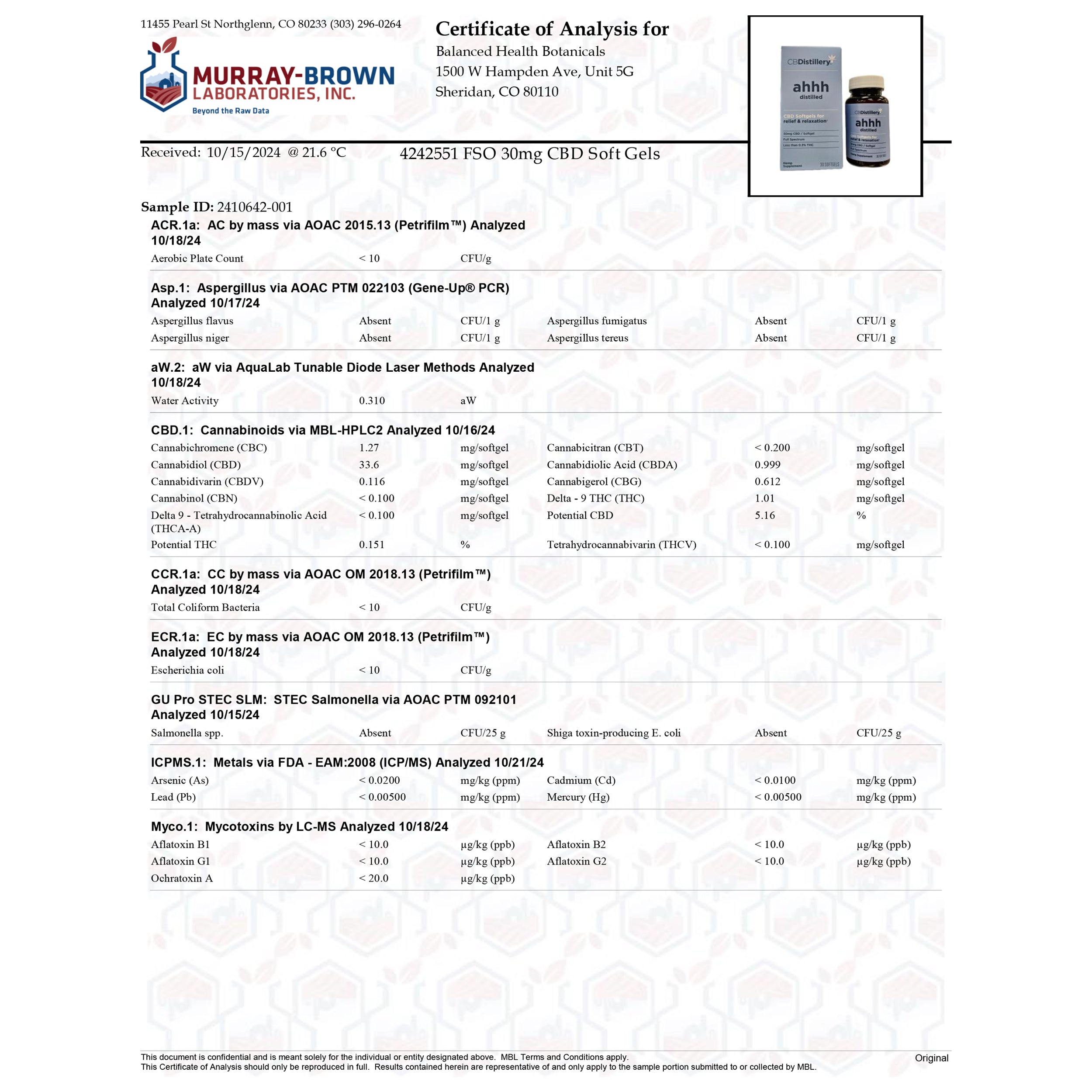 "# Certificate of Analysis\n\n**Labstat**\n10427 Cogdill Road, Suite 500\nKnoxville, TN, 37932, US\nDEA Number: RC0639128\n\n**Labstat**\nMicro Live Rosin Gummies - Blueberry GDP\nMatrix: Infused Product\n\nSample: KN40424005-003\nHarvest\/Lot ID: MGDP3899\nBatch#: 2752\nBatch Date: 03\/26\/24\nSample Size Received: 20 gram\nRetail Product Size: 40 gram\nOrdered: 04\/17\/24\nSampled: 04\/17\/24\nCompleted: 04\/26\/24\n\n**Apr 26, 2024 | Hometown Hero**\n9501-B Menchaca Rd #100\nAustin, TX, 78748, US\n\n**Status: PASSED**\nPage 1 of 1\n\n## Product Image\n\n!Product Image\n\n## Safety Results\n\n| Pesticides | Heavy Metals | Microbials | Mycotoxins | Residual Solvents | Filth | Water Activity | Moisture | Terpens |\n|------------|--------------|------------|------------|-------------------|-------|----------------|----------|---------|\n| NOT TESTED | NOT TESTED | NOT TESTED | NOT TESTED | NOT TESTED | NOT TESTED | NOT TESTED | NOT TESTED | NOT TESTED |\n\n## Potency\n\n**Total THC**\n0.1184%\n\n**Total CBD**\n0.1123%\n\n**Total Cannabinoids**\n0.2307%\n\n### Cannabinoid Content\n\n| Cannabinoid | % | mg\/g |\n|-------------|---|------|\n| CBDVA | ND | <0.01 |\n| CBDV | ND | <0.01 |\n| CBDA | ND | <0.01 |\n| CBGA | 0.0223 | 0.223 |\n| CBG | 0.1123 | 1.123 |\n| CBD | 0.0900 | 0.900 |\n| D9-THCVA | ND | <0.01 |\n| D9-THCV | ND | <0.01 |\n| CBN | ND | <0.01 |\n| D9-THC | 0.1000 | 1.000 |\n| D8-THC | ND | <0.01 |\n| D10-THC | ND | <0.01 |\n| CBC | <0.01 | <0.01 |\n| THCA | 0.0124 | 0.124 |\n\n**Analyzed by:** 2657\n**Weight:** 20.076g\n**Extraction date:** 04\/26\/24 10:15:41\n**Extracted by:** 2657\n\n**Analysis Method:** SOP 130.031, TM 5.0P.7.0.031.0N Expanded Measurement of Uncertainty: Flower Matrix d9-THC = 0.100, THCA = 0.124, TOTAL THC = 0.112. These uncertainties represent an expanded uncertainty expressed at approximately the 95% confidence level using a coverage factor k=2 for a normal distribution.\n**Instrument Used:** HPLC #8080\n**Reviewed on:** 04\/26\/24 13:09:43\n**Data Check on:** 04\/26\/24 13:09:36\n\n**Running on:** N\/A\n**Run Numbers:**\n- 04192024.0; 07272424; 045242.R06; 07212404\n- 10041018; 12082024; 054836; 251760; 201123.086; 204618; 231201-054; 100270828.941; 107.109; 6805215; GD202016; 000257576; n\/a; IV250.100\n\n**Pipettes:** EWR-120; EWR-121; EWR-122\n\nFull spectrum cannabinoid analysis using High Performance Liquid Chromatography with DAD\/UV detection (HPLC-DAD\/UV). All cannabinoids have an LOQ of 0.01%.\n\n----\n\n**Sue Ferguson**\nLab Director\nState License # n\/a\nISO Accreditation # 17025:2017\n**Signature**\n**Signed On:** 04\/26\/24\n\nThis report shall not be reproduced, unless in its entirety, without written approval from Labstat. This report is an Labstat certification. The results relate only to the material or product analyzed. Test results are confidential unless otherwise agreed with the service. \"ND\" = Not detected; \"LOQ\" = Limit of Quantitation (LOQ) and Limit of Detection (LOD) are terms used to describe the smallest concentration that can be reliably measured by an analytical procedure. All measurements are reported in units of mg\/g. The limits are based on F.S. Rule 64-4.310."