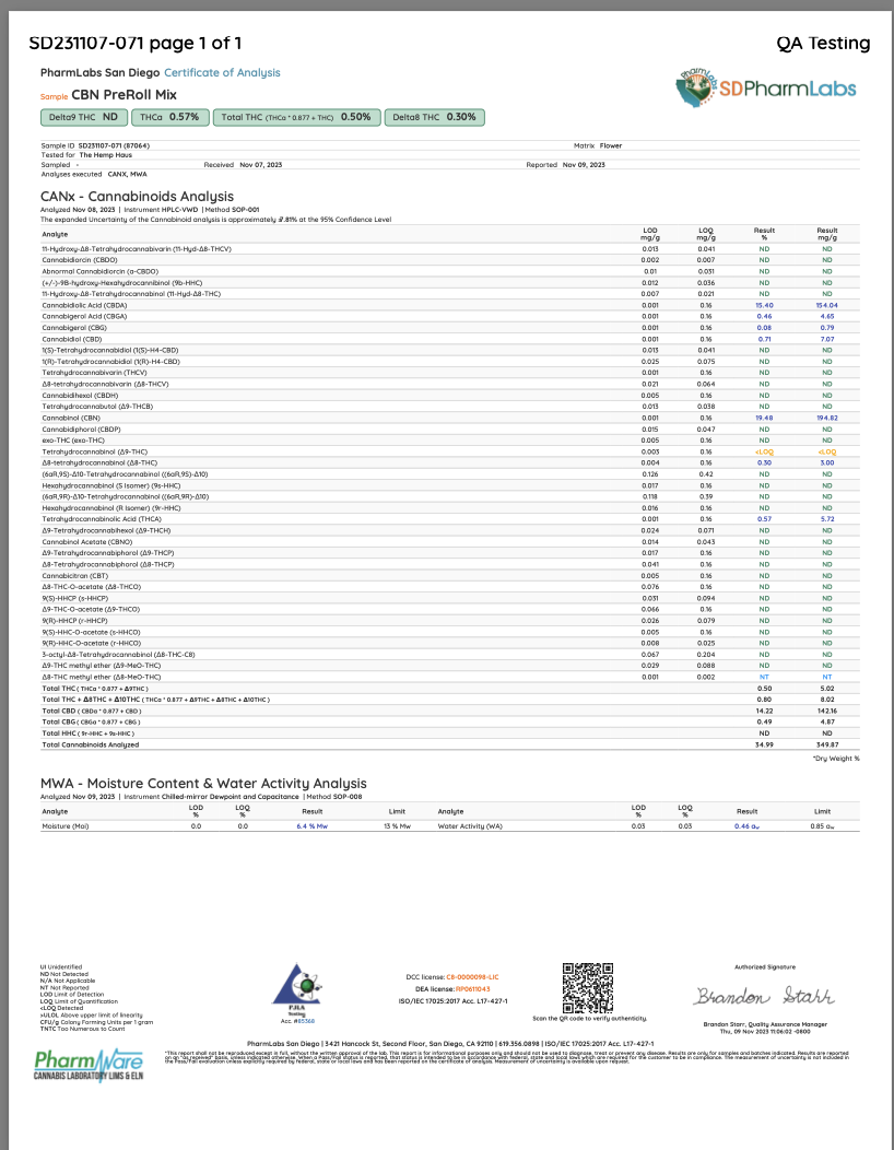 **Total CBD Calculation:** Total CBD = (CBDA * 0.877) + CBD